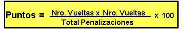 El puntaje de los competidores se calcula sobre la base del número de vueltas y a las penalizaciones acumuladas, la fórmula es un poco complicada :