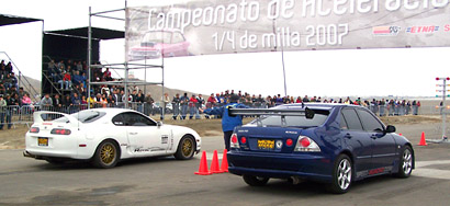 Desde muy temprano fueron llegando los pilotos al aeródromo Lib Mandy, ubicado en el km49 de la Panamericana sur. A medida que los vehículos se cuadraban, en sus respectivos lugares, uno al lado del otro, la variedad de colores y modelos creaba el ambiente propio de una competencia importante. Los temas de conversación eran todos sobre autos, no faltó ningún ingrediente para esta fiesta de fierros y caucho quemado.