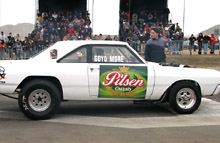 Carlos Bustamante, en el potente e impecable Plymouth Barracuda, con un tiempo de 11.83, fue el segundo mejor clasificado de todos los autos. Esta semifinal prometía, los dos ocho cilindros más rápidos de nuestro medio, se encontraron lado a lado, un duelo que muchos esperaron ver por varios años. Uno de los dos sería inevitablemente eliminado . Bustamante empezó con el lavado de neumáticos, luego Goyo respondió, el sonido de los v8 era impresionante, mas adelante, cuando ya todo parecía listo para que partan, More pidió unos minutos, con ello logró ‘enfriar” un poco el ambiente.