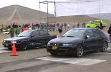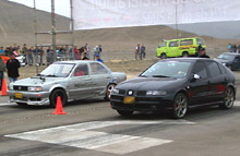 Dos Toyotas lado a lado, el Corolla de Fredy Esquivel y el Corona de Quispe. |