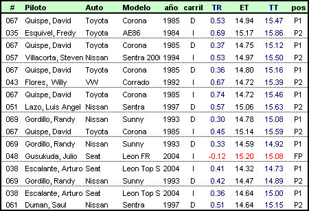 El Sentra y el Seat con el mismo ET, la diferencia en el tiempo de reacción.