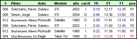 El Eagle Talon de Benvenuto, no pudo dar pelea en la final..
