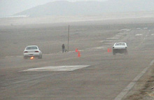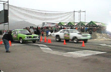 El verde del semáforo sobre el Dart, que saca una ventaja al Impreza de Ayulo.