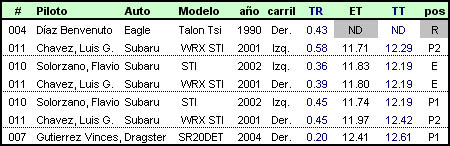 Los dos Imprezas más rápidos del dia, lado a lado, Solórzano vs. Chávez. |