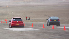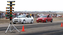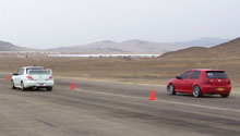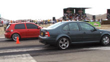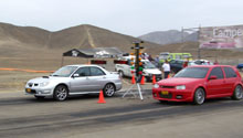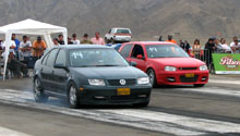 Se pusieron en partida los dos primeros competidores, Javier Carmona a bordo de su STI blanco, aprovechó la tracción integral del Impreza y logró una considerable ventaja inicial sobre el Golf -tracción delantera- de Alan Chau, su victoria parecía inminente, sin embargo el Golf rojo se recuperó vertiginosamente, llegando por fin a superarlo varios metros antes de la línea final. El siguiente rival fue otro Impreza, del debutante Jaime Rodríguez-Mariategui. La carrera pareció un calco de la anterior, el Impreza se alejó al comienzo pero el Golf recuperó la ventaja inicial y pasó nuevamente primero por la meta.