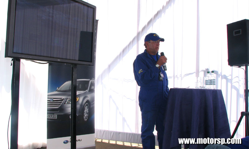 Las actividades empezaban en una carpa especialmente preparada con equipos multimedia, en ella se hizo la presentación del modelo y se precisaron sus características distintivas, luego de eso y de las palabras de la delegación peruana, liderada por Coco Arias, todos salieron a la pista, con la expectativa puesta en el manejo del nuevo WRX..