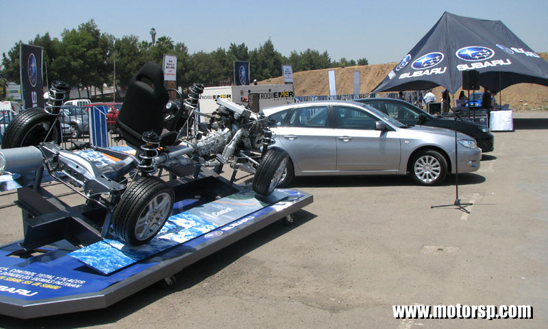 Nuestros pilotos, Ricardo Medina y Carlos Pigati, empezaron la fiesta dando una demostración en sendos WRX; su manejo agresivo y en especial el derrape prolongado en las curvas en U, dejó encantados a los asistentes, tanto que los aplausos y las venias de los generosos espectadores no se dejaron esperar. Ambos pilotos, como buenos competidores, trataron de marcar el mejor tiempo en cada vuelta, llegando a estar uno del otro, a escasas décimas de segundo.
