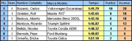 Muchos esperaban el duelo entre los dos escarabajos, empatados en el campeonato, lamentablemente, Fernando Dreyfuss no estuvo presente en esta fecha. Su ausencia permitió ver un interesante duelo entre dos autos muy distintos, el escarabajo de Carlos Bozanic y el Mercedes 280SL de Alberto Bedoya. En la primera manga, Bozanic derrotó al Mercedes-Benz, con un tiempo de 1 minuto y 41 segundos. El potente Mercedes se recuperó, y ganó las dos siguientes mangas, pero no fue suficiente para superar el mejor crono del vocho, hecho en la primera manga y que finalmente sería el mejor de la categoría Vintage.