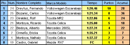 Con esta victoria Fernando Dreyfuss se acerca a Bozanic en el campeonato, mientras que Rolf Giraldez queda tercero y muy cerca, a dos puntos, Alberto Bedoya, quien no las tuvo consigo en esta 4ta fecha, aunque dio bastante show con los derrapes del potente Mercedes.