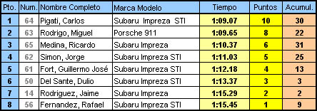 Carlos Pigatti tampoco pudo mejorar su tiempo record, quedaba solamente “Valvulita” Medina, para intentar bajar el 1:09.07, algo a lo que ya nos tiene acostumbrados. Ricardo se exigió al máximo, aplicando la técnica del freno de mano en varias curvas, logró giros muy rápidos y espectaculares, sobre el final logró rebajar su propio tiempo, pero no fue suficiente para superar a Pigatti ni a Rodrigo.