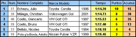 Bruno Coello, su mejor vuelta fue la tercera, quedo en 4to puesto.