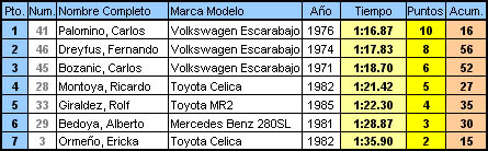 En la ultima manga, Rolf Giraldez logró acercarse al tiempo de Montoya pero sin poder superarlo, Bedoya en su Meche 280SL también pareció acercarse, pero un FC lo alejo nuevamente. En la lucha por la punta, entre escarabajos, Carlos Palomino marcó 1:16.87, con este tiempo era el nuevo líder, aunque faltaban salir los dos punteros del campeonato.