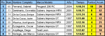 El Impreza GT, pilotado por Javier de las Casas (no confundirlo con Enrique), marcó un buen tiempo en la segunda manga, colocándose momentáneamente en segundo lugar, luego Enrique De las Casas le quitaría este puesto, poniéndose a menos de un segundo del Seminario. Una manga más y todo quedaba definido.