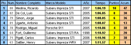 Terminada la manga, solamente Guillermo Fort pudo mejorar su tiempo, lo que le permitió pasar del 7mo al 6to lugar. Miguel Rodrigo con el 5to lugar, y Carlos Pigatti con el 7mo, empataron en puntos por el campeonato. El subcampeonato, quedó en manos de Carlos Pigati, por haber tenido un 1er puesto en una de las fechas.
