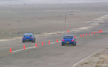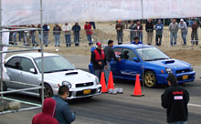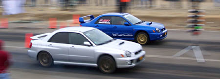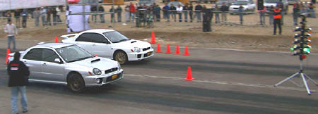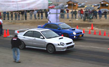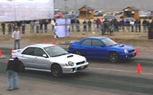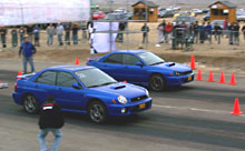 Final de los 12 segundos, el WRX plata con ventaja sobre el Spec-C azul.
