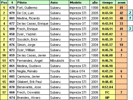En la 3ra manga, Tato de Col subió al segundo puesto y escoltaba a Guillermo Fort en la punta, ambos junto a Kike de las Casas eran los únicos dentro de los 43 segundos. En la 4ta y penúltima manga, Ricardo Medina entro también en los 43 segundos y se puso tercero, a solo una centésima del segundo lugar, Tato de Col.
