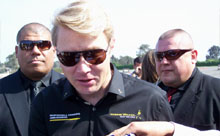El sol salió con más fuerza de lo acostumbrado en este frío año, era como si quisiera darle a Mika la mejor impresión, de pronto un impecable sedán Mercedes Benz entró a la pista, bajaron de él dos fornidos guarda espaldas y luego el delgado y rubio piloto, que de inmediato fue ovacionado por los presentes, todos olvidamos la incómoda espera.
