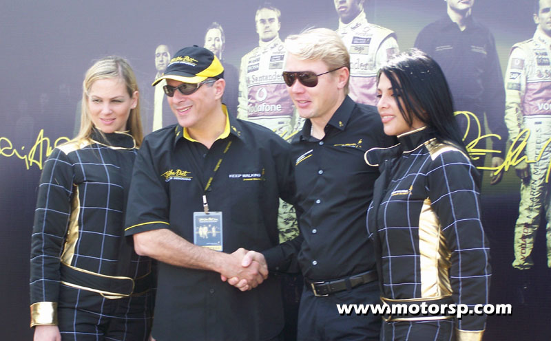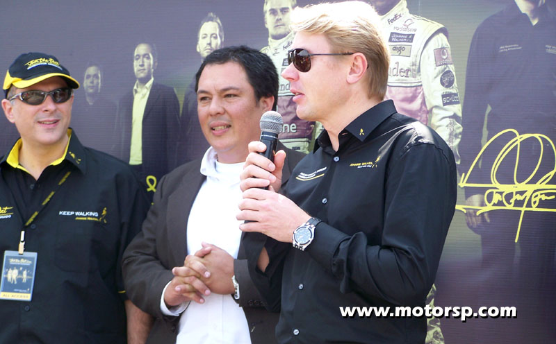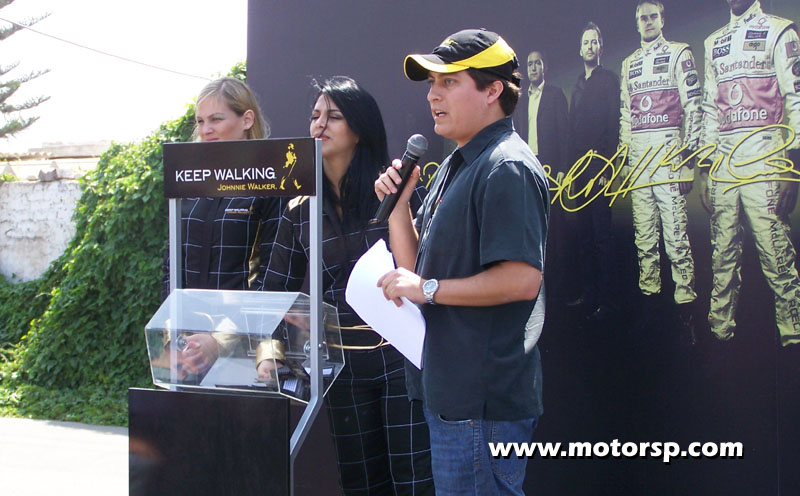 Mika probaría el circuito , yo sería su afortunado acompañante y el único que podía estar a su lado sin ser mal visto por su gente de seguridad, lo saludé amablemente y él respondió de la misma manera, nos dimos un aprentón de manos y luego de algunos “por favor... “ y “gracias...”, nos dispusimos a subir al auto pero, de pronto ocurrió lo inesperado, el celoso guardián de las llaves del Mercedes Benz 350 CLK, había desaparecido, allí estábamos Mika, el auto, el público y no aparecía la llave, para no creerlo.