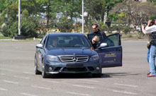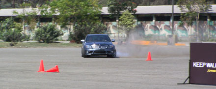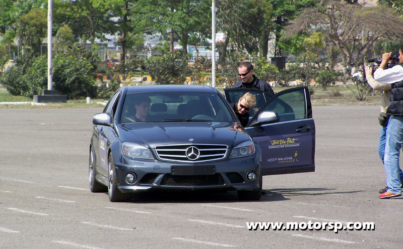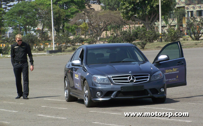 Pero en el Perú la gente es generosa, un señor del público, cliente premium de la marca, al vernos en apuros, nos ofreció su Mercedes Benz C63 AMG, un V8 de 450 HP, para reemplazar al auto sin llave, corrí hasta el auto, lo arranqué de inmediato, sentí la potencia y suavidad del motor, me bastó recorrerlo apenas unos pocos metros para notar el impresionante torque de su potenciado y muy equilibrado motor en V, parecía que las llantas se llevaban a rastras parte de la superficie de la pista, impresionante; cedí el auto a Mika y dimos tres vueltas que recordaré siempre, me dijo que el circuito estaba perfecto, aunque era muy resbaloso, no puede evitar percatarme de que él y un miembro de su equipo, que iba en el asiento de atrás, estaban divirtiéndose a lo grande.