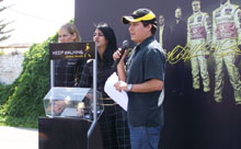Luego, caminó hacia el estrado sin que nadie del público pudiera acercarse a más de un metro, dio un pequeño discurso en inglés, el cual todos aplaudieron con entusiasmo, ...de pronto todos eran bilingües, al menos eso parecía.