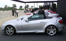 Las vueltas al circuito hubieran continuado por más tiempo, si no fuera que las llantas traseras también llegaron al fin de su vida útil, el campeón había excedido por largo, el tiempo pactado de manejo, se tomó varias fotos, saludó y sonrió con la amabilidad de siempre y se fue como había venido, en un elegante Mercedes acompañado de su gente.