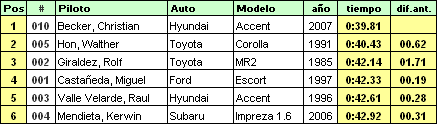 En las siguientes mangas, Becker fue dominando progresivamente la técnica del freno de mano, sus cronos bajaron y con 39.81, logró la 1ra victoria del año. Walter Hon en su Corolla mejoró los tiempos del MR2 de Giraldez (3ro) y quedó segundo, a 0.62 de Becker. Mientras que por el 4to puesto, Miguel Castañeda en su Ford Escort, superó en la última manga al Hyundai Accent de Raul Valle.
