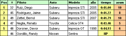 Bernd Zettel salió dispuesto a bajarle el tiempo a esta dupla del Impreza azul, sin embargo en esta ocasión no le fue posible, Diego Ruiz se quedó con la victoria felizmente en muy poco tiempo se disputará una nueva fecha (28 de Junio) y con ella una nueva oportunidad de estar y presenciar una competencia muy apretada.