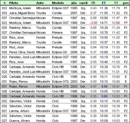 El Honda de Victor Sanchez, adelante del Eclipse de