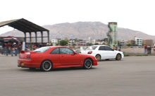 Paolo Pfuyo y Flavio Solórzano, dos retornos importantes en las carreras de aceleración disputaron el clásico duelo entre Impreza y Evo. La partida fue muy pareja, ambos autos salieron lado a lado pero un poco más adelante, el Evo logró tomar la delantera y la mantuvo hasta el final.
