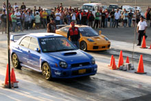 Los tiempos de reacción de los dos pilotos fueron muy buenos 0.22 para Juan Carlos y 0.24 para Juan Mostacero, pero el Impreza no llegó a traccionar bien, patino un poco y el DragLaren se escapó raudo hacia la meta, marcando su mejor tiempo del día 12.28 que finalmente le dio la victoria.