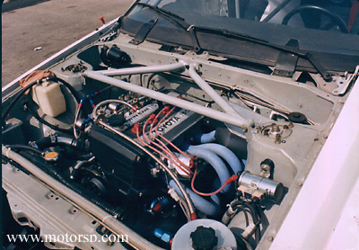 entonces nuevo y revolucionario motor Toyota 4AG 1600 DOHC 16 válvulas, con preparación TRD y alrededor de