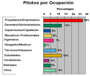 Este cuadro es interesante porque muestra que la mayoría de los pilotos tienen un nivel medio de ingresos (made in USA) , aunque es difícil de extrapolarlo a nuestra realidad, los datos resultan son reveladores.