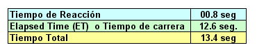 En la etapa final las pantallas del control de tiempos mostraran su Tiempo Total de 13.4 seg., pero por haber incurrido en un Elapsed Time de 12.6 segundos, este corredor será reclasificado con los autos de 12 seg., habrá que explicar esto a los espectadores. Los pilotos por su parte lo tienen más claro ya que después de cada carrera de la clasificación o la final reciben tickets impresos con sus tiempos completamente detallados. ...Ya veremos, el futuro es promiosorio.