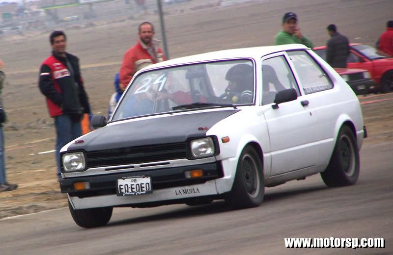 Las partidas de Del Carpio en el Starlet no fueron muy buenas, sus TR eran altos, si descontáramos el TR al tiempo que marcaba y hacemos lo mismo con sus rivales, nos daremos cuenta que el Starlet era el auto mas rápido en esta categoría, a tal punto que, en caso de haber mejorado su partida, podría haber sido reclasificado en los 14s. Así que la final de la categoría , contra el Camaro de Dulanto, prometía ser muy reñida. Desafortunadamente para Dulanto, al partir el display marco FOUL, se había adelantado y la Muela ganó automáticamente la categoría, desatando la algarabía en las tribunas, que veía repetirse la historia de David contra Goliat.