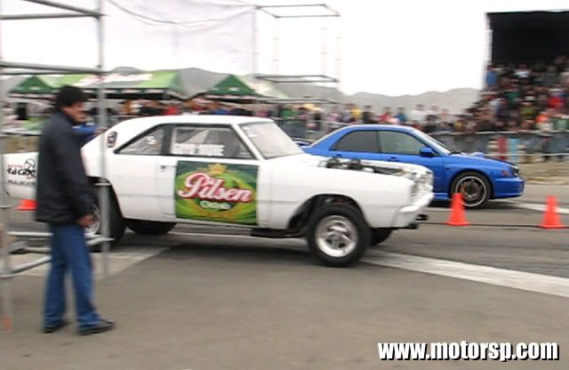 Cuatro autos quedaban para definir la fecha, dos de 12 segundos y los otros dos de 11 segundos. En la categoría de los 12 segundos, reaparecía , después de más de un año de ausencia, José “Goyo” More, en su poderoso Dodge Dart, quien debía enfrentar en esta final al STI de Chávez, recientemente reclasificado. El Dart empezó su lavado de neumáticos, mientras que Chávez, se concentraba en partir bien nuevamente, para tener alguna oportunidad de ganar. Efectivamente el STI partió mejor y tomó la delantera, pero algo le paso en el cambio a segunda, el auto pareció clavarse en el piso tras el salto y el Dodge Dart, no tuvo “conmiseración” , pasó raudo dejando muy atrás al Impreza, que a partir de ese instante no hizo nada por defenderse, sabía que en esas condiciones era imposible alcanzar al big block. Goyo More ganó la carrera pero bajó su tiempo a 11.63, por lo que Luis Guillermo ganó la categoría de 12 segundos. Goyo estaba de vuelta en el club de los 11 segundos.