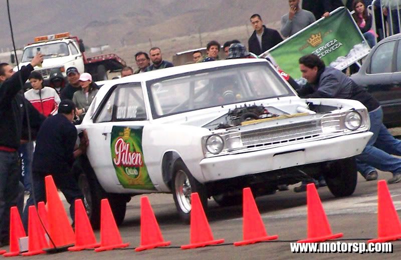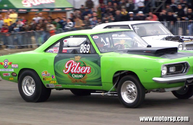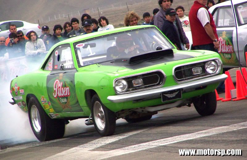 Carlos Bustamante, en el potente e impecable Plymouth Barracuda, con un tiempo de 11.83, fue el segundo mejor clasificado de todos los autos. Esta semifinal prometía, los dos ocho cilindros más rápidos de nuestro medio, se encontraron lado a lado, un duelo que muchos esperaron ver por varios años. Uno de los dos sería inevitablemente eliminado . Bustamante empezó con el lavado de neumáticos, luego Goyo respondió, el sonido de los v8 era impresionante, mas adelante, cuando ya todo parecía listo para que partan, More pidió unos minutos, con ello logró ‘enfriar” un poco el ambiente.