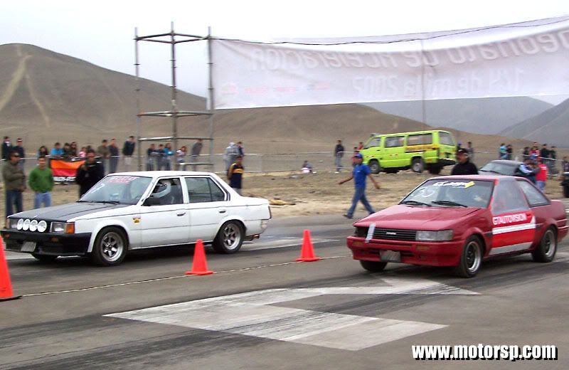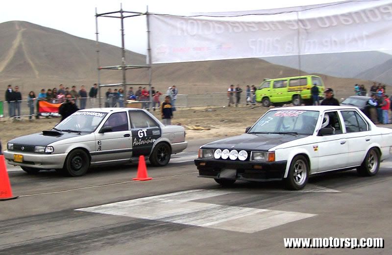 Dos Toyotas lado a lado, el Corolla de Fredy Esquivel y el Corona de Quispe. |