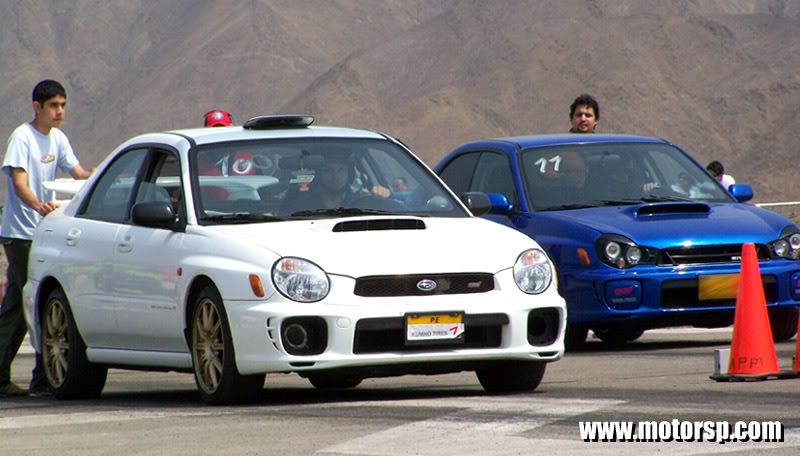 Los dos Imprezas más rápidos del dia, lado a lado, Solórzano vs. Chávez. |