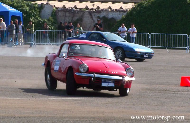 Otro duelo muy interesante, fue el protagonizado por el Triumph Spitfire de Ricardo Montoya y el Mazda RX7 de Rolf Giraldez, ambos con motores de 1300 cc, uno a pistones y el otro rotativo. El Triumph, con no más de 80 HP, una curva relativamente plana de potencia y peso ligero , haría frente a los 150 HP del rotativo, duelo aparentemente desigual, sin embargo los 400 kg de diferencia en el peso y la ausencia de bajos típico de los motores Wankel; hacía presagiar carreras muy disputadas.