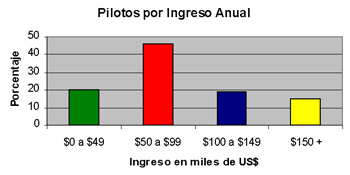 Este cuadro es interesante porque muestra que la mayoría de los pilotos tienen un nivel medio de ingresos (made in USA) , aunque es difícil de extrapolarlo a nuestra realidad, los datos resultan son reveladores.
